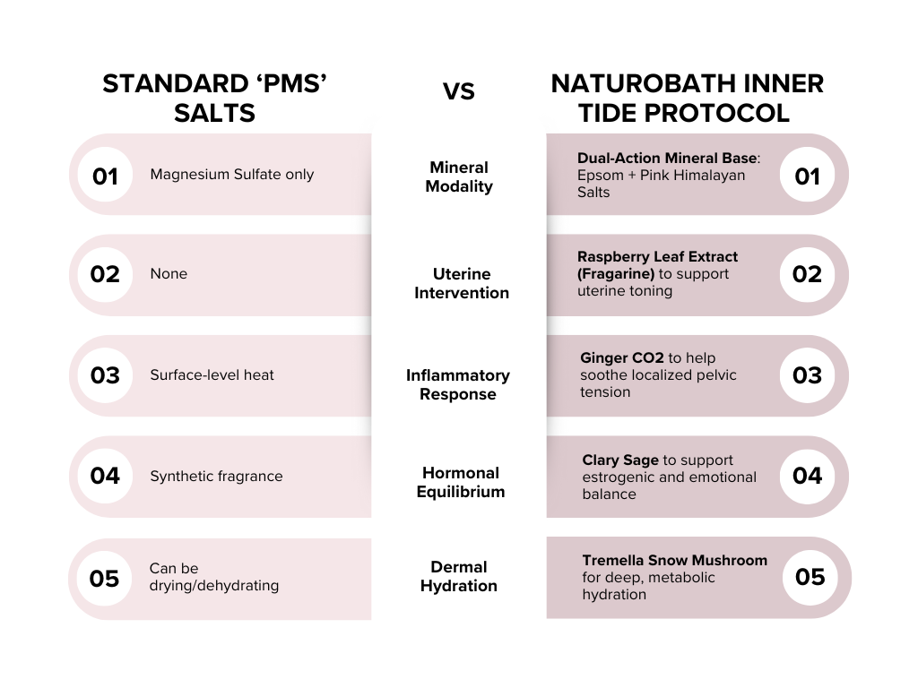Evidence-based protocols offer a natural pathway to support the body during PMS and endometriosis by addressing uterine muscle tension and systemic inflammation. By integrating mineral-rich soaks like Inner Tide—formulated with Raspberry Leaf and Ginger CO2 to help soothe the physiological triggers of cramping—alongside thermal support and targeted nutrition, you can effectively manage menstrual discomfort and promote pelvic relaxation without the use of synthetic additives.